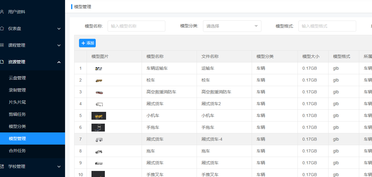 资源上传与分类机制充分考虑了教学场景的专业性需求。教师登录系统后,可通过网页端或客户端上传OBJ、GLB、FBX 等主流格式的三维模型及全息视频,上传过程中系统会自动进行格式兼容性检测,对不符合标准的文件提供格式转换服务。为便于快速检索,系统采用 "多级分类体系":可根据教学系统设置文件目录;教师还可自定义标签,如" 教学重点 ""实验演示" 等,形成三维立体的资源索引体系。